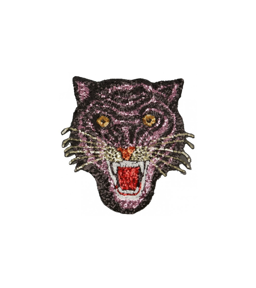 XL-Tiger-Aufnäher zum Aufbügeln mit rosa Pailletten, 22 cm x 23 cm
