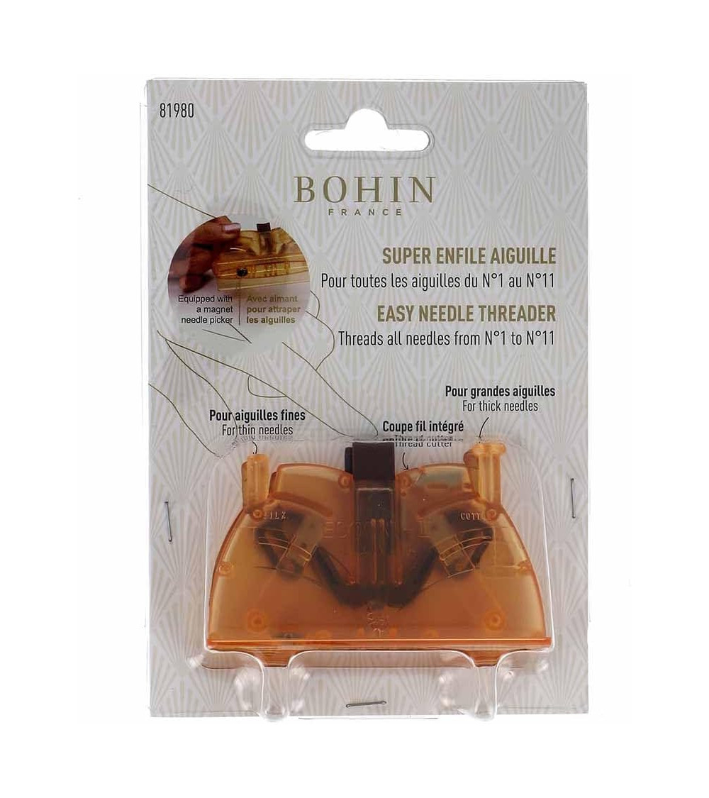 By choosing the Bohin Super Needle Threader, you are investing in a quality tool that will save you time and precision in your sewing work. Whether you are a sewing professional or a passionate amateur, this needle threader will quickly become an essential in your sewing box.
