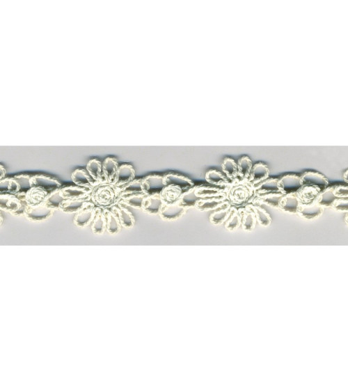 Bobine 25m Dentelle vagues Blc/bleu canard 20mm