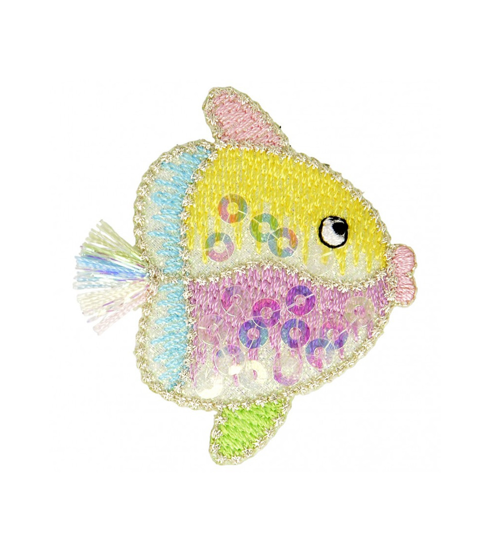 Multicolored clown fish sequin iron-on patch 4.5 cm x 5 cm