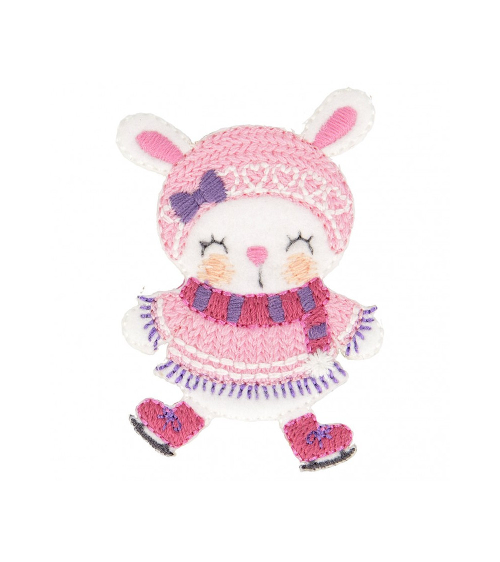 Rabbit iron-on patch on ice skates 5.5 cm x 4 cm