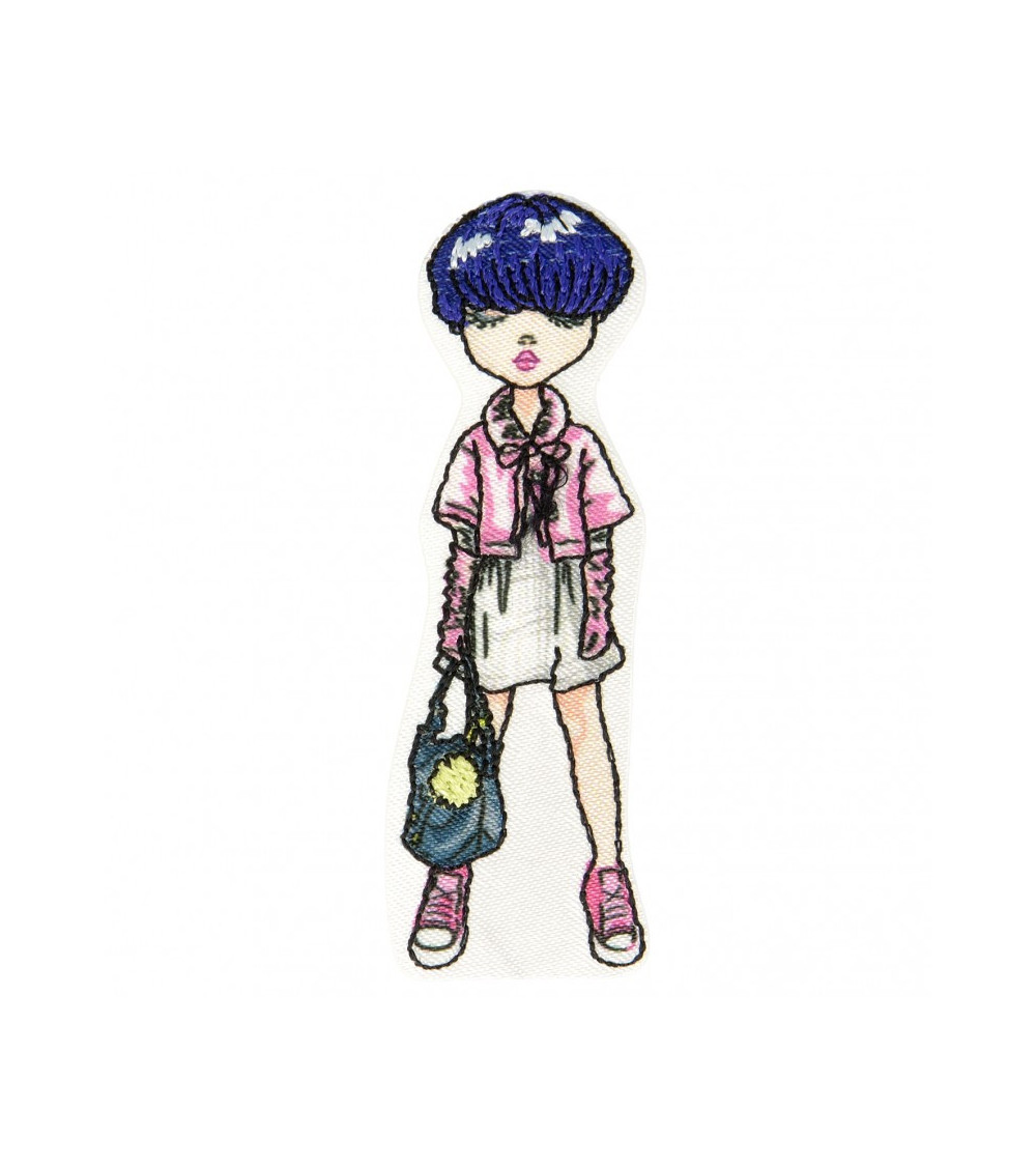 Iron-on patch young woman with blue hair 6.5 cm x 2 cm