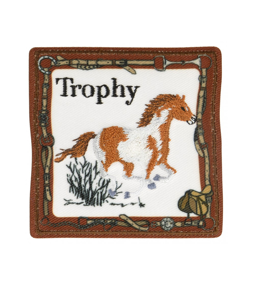 Brown horse trophy iron-on patch 6 cm x 6 cm