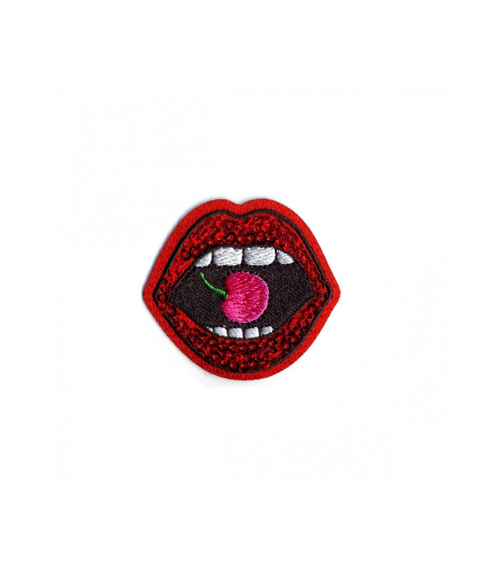 Funny mouth and cherry iron-on patch 45mm x40mm