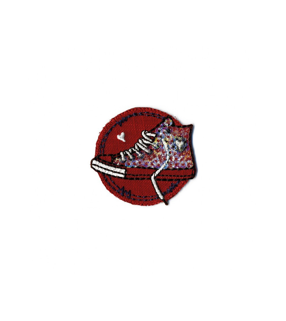 Trendy sneakers iron-on patch with red glitter 50mm