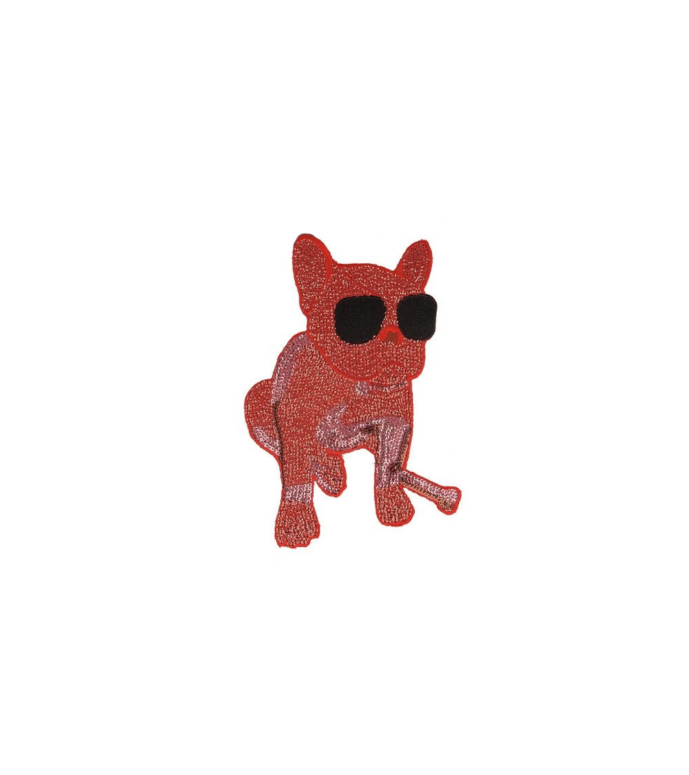 XL sewing patch bulldog dog with red sequin guitar 21cm x 14.5cm