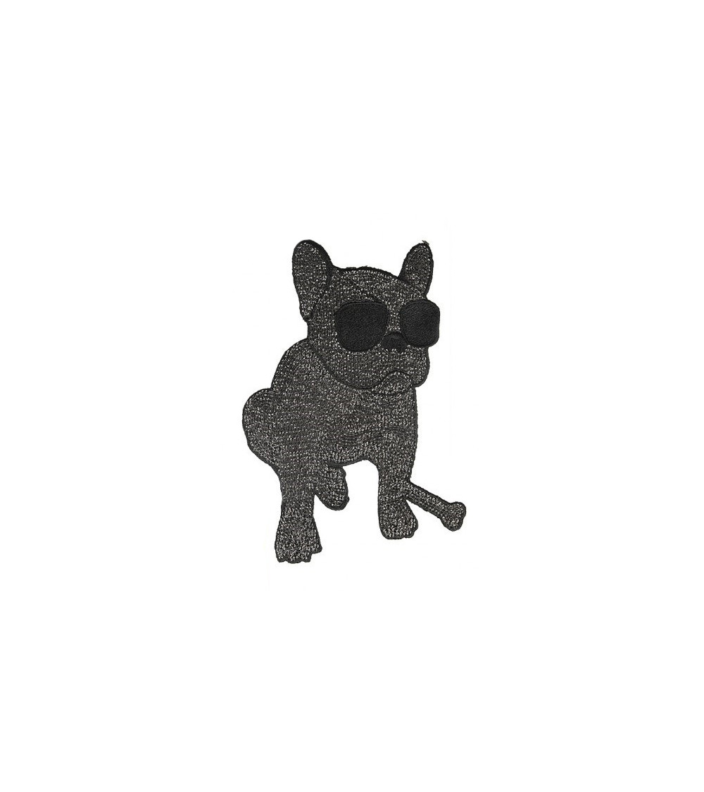 Ecusson à coudre XL chien bouledogue avec guitare à sequins noir 21cm x 14,5cm