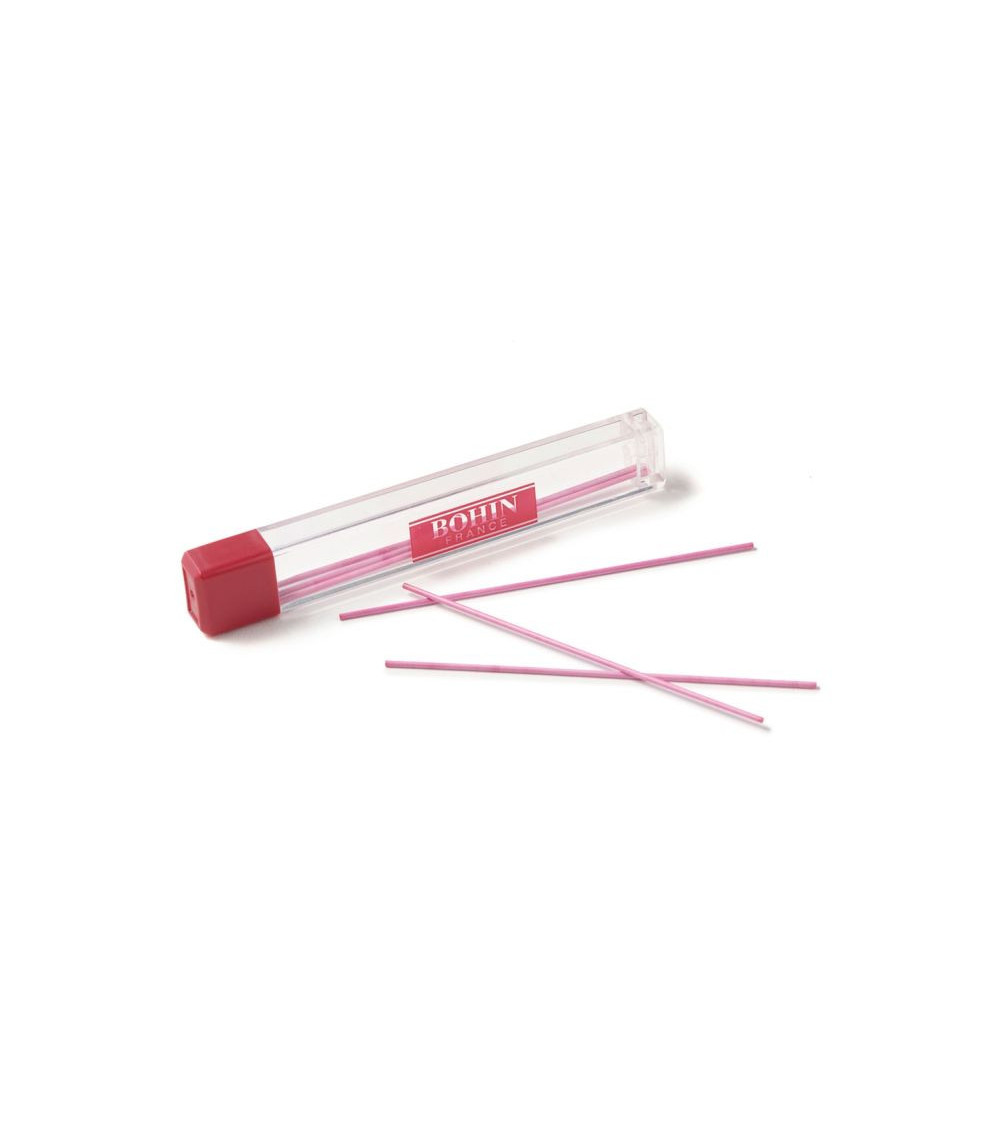 Give your chalk pencil a new lease of life with this set of 6 extra fine Bohin refill leads, pink tint. Ideal for both light and dark fabrics, these leads provide precise tracing, which can be erased on contact with water. An essential for demanding seamstresses, looking for neatness and finesse in the preparation of their works.