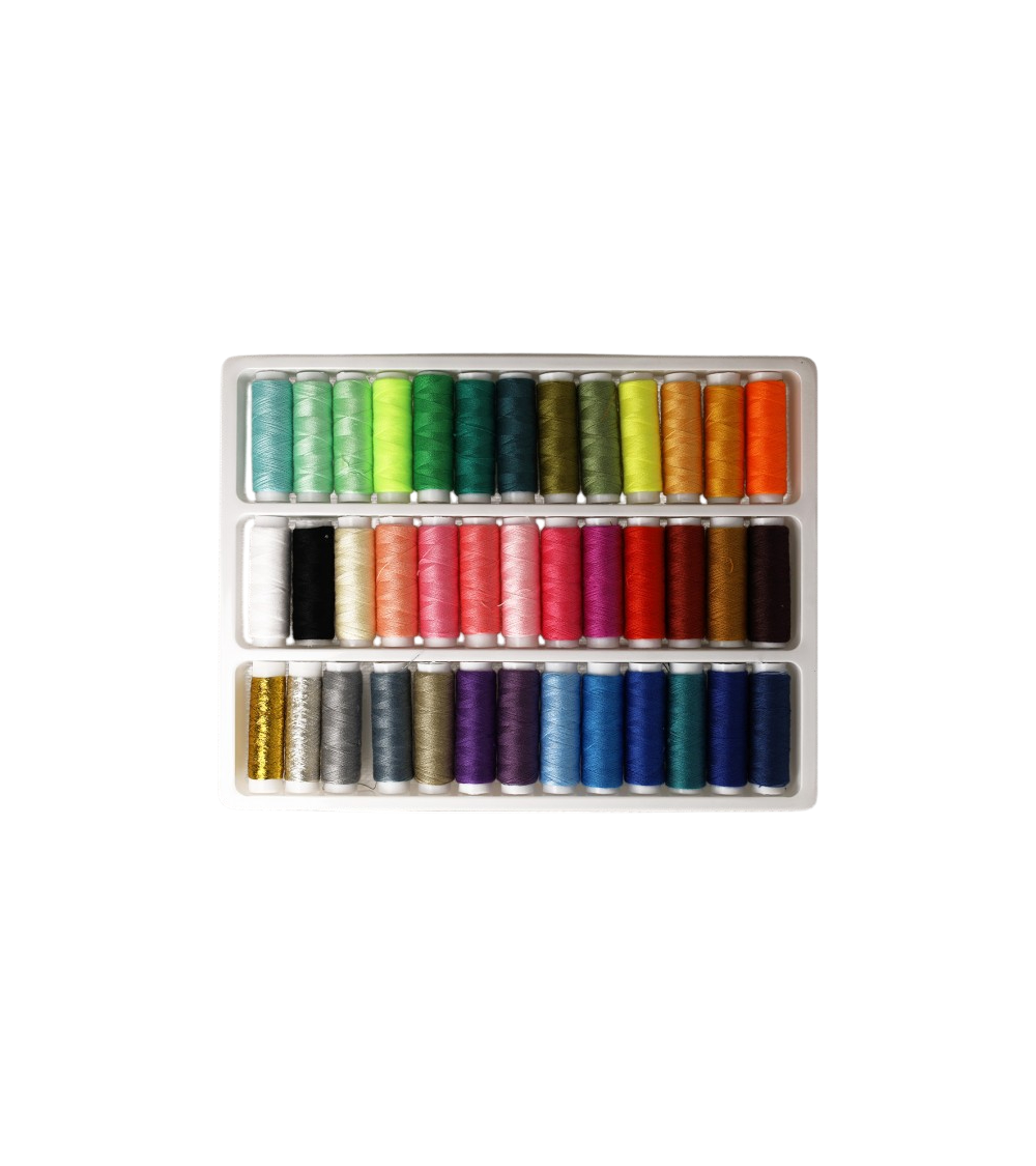 Malette de 39 bobines de fils 100m assortis 100% polyester