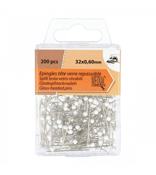 Scatola da 100 spilli con testa in vetro 38mm colore giallo mais