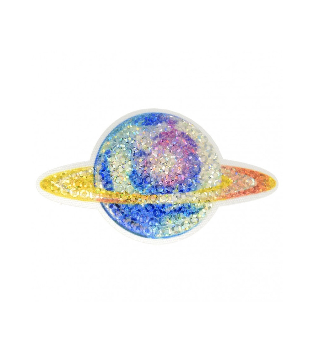 Toppa termoadesiva con paillettes pianeta arcobaleno 4 cm x 6,5 cm